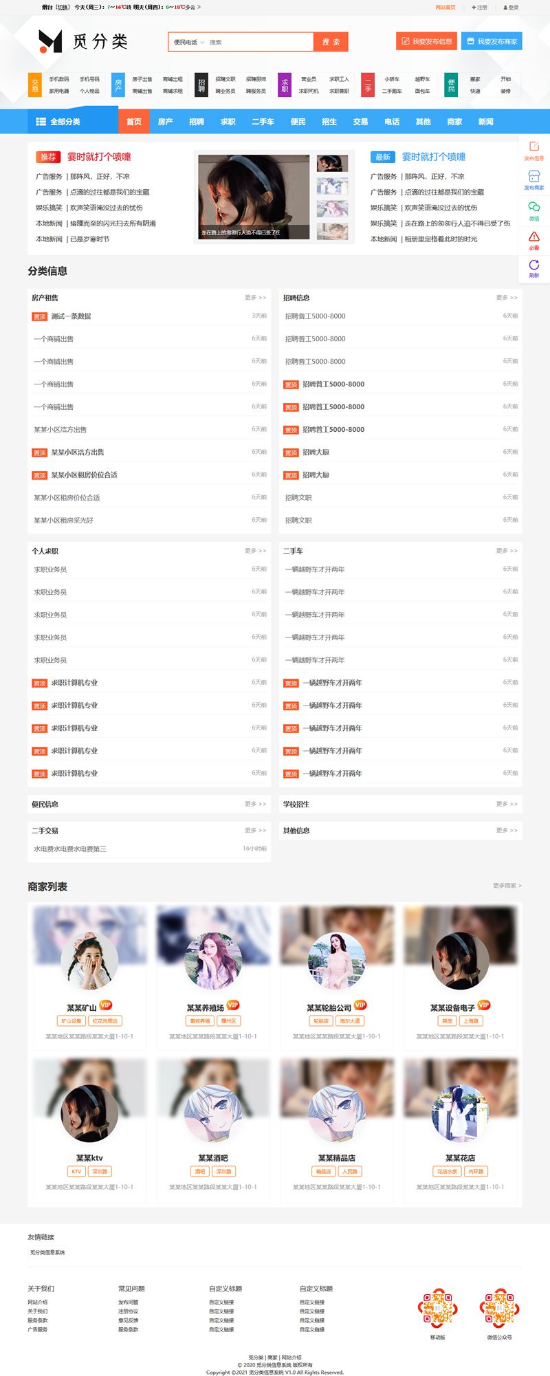 下载地址:觅分类信息系统v1.0/地方门户分类信息系统源码 (kdocs.cn)