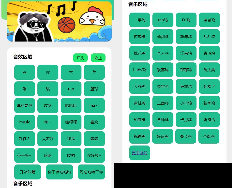 在线鸡乐盒PHP网页版源码,跟软件版差不多免去安装步骤,包含鸽鸽音乐还有恶搞的bgm,开源无加密所有外部文件全保存在本地了,有的mp3文件大建议放在cdn库加载会快些。