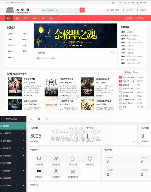 前端高仿起点小说网,自适应模板,可以分设手机域名。