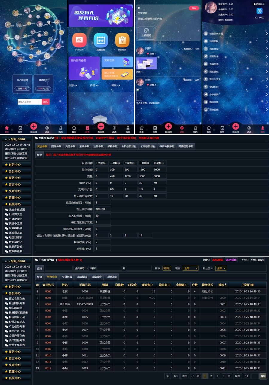 全新任务悬赏抢单系统源码,支持借款余额宝功能、粉丝团团长分佣系统源码。