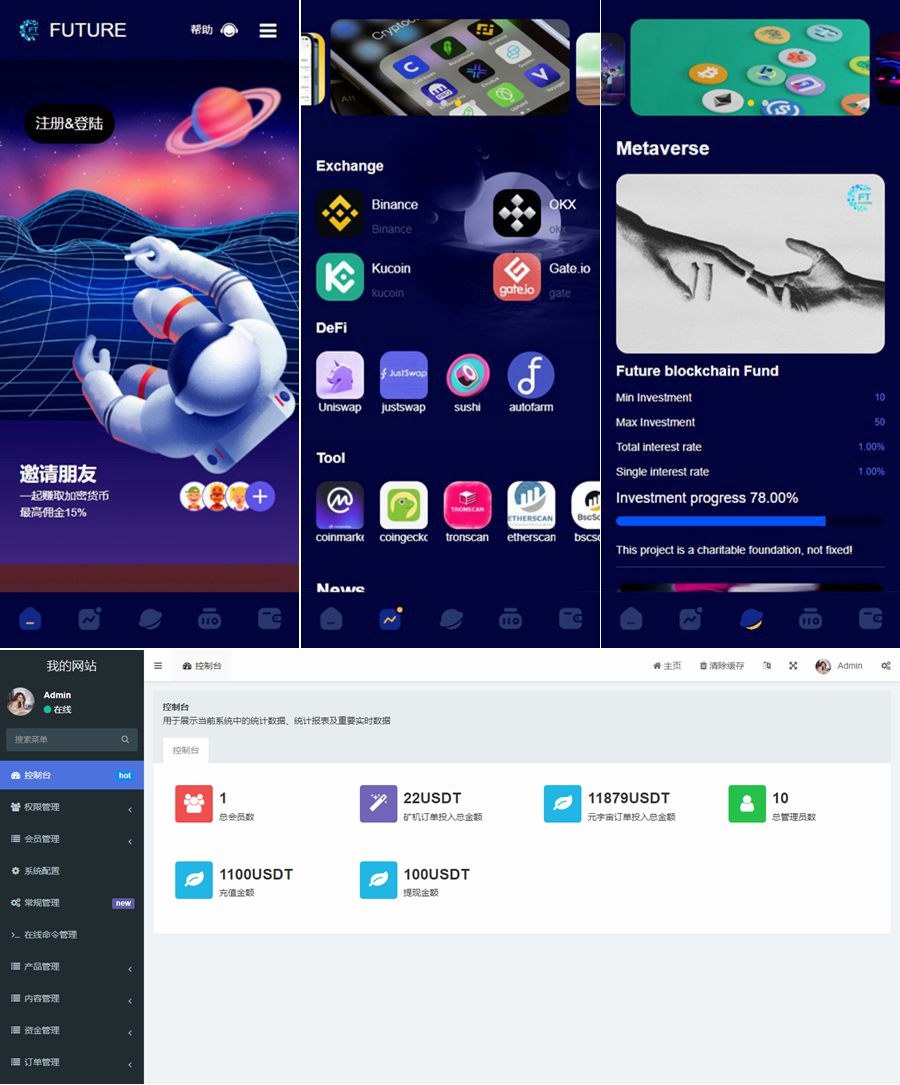分享一款元宇宙区块链系统源码,元宇宙云矿机源码,使用FastAdmin开发,前端界面看上去非常的高大上,值得借鉴学习学习。