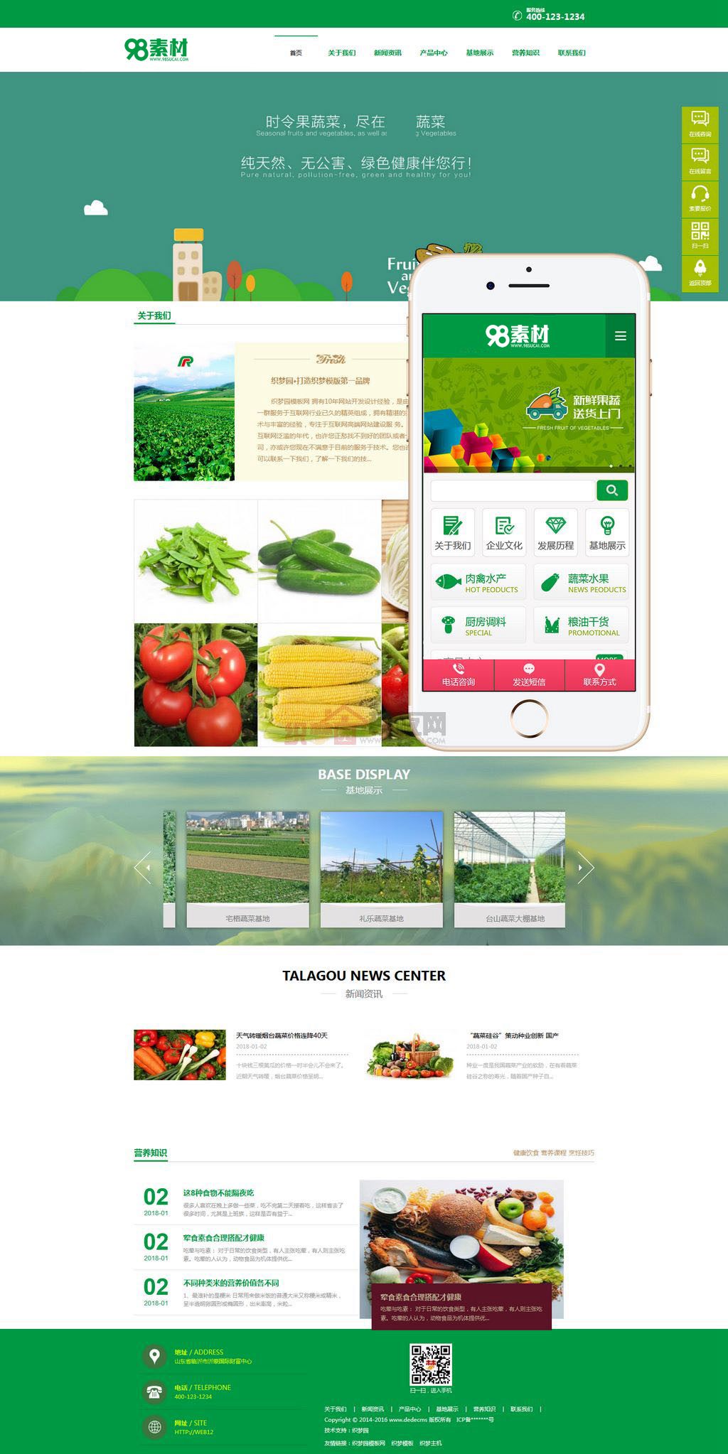 绿色蔬菜水果类企业模板(带手机移动端),适合各类公司企业行业使用,整体布局清晰,绿色生态,干净,大气,简单,适合做蔬菜水果类企业的官方网站,带最新的织梦手机移动端,同一个后台同数据,不比一篇内容两次发。只需发布一次,pc和手机移动端都会有一样的内容!